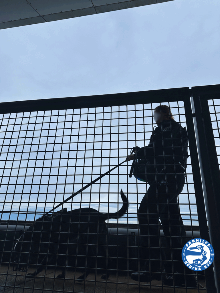 Um die eigenen Fehltritte zu kaschieren und um Reaktionen zu provozieren, marschierten zusätzlich noch behelmte Einheiten auf der Tartanbahn vor der Kurve auf. Ebenso wurden Einheiten mit Hunden in der Halbzeitpause in den Umlauf über der Kurve positioniert. Beides eine bislang einmalige Aktion ohne Sinn und Verstand.